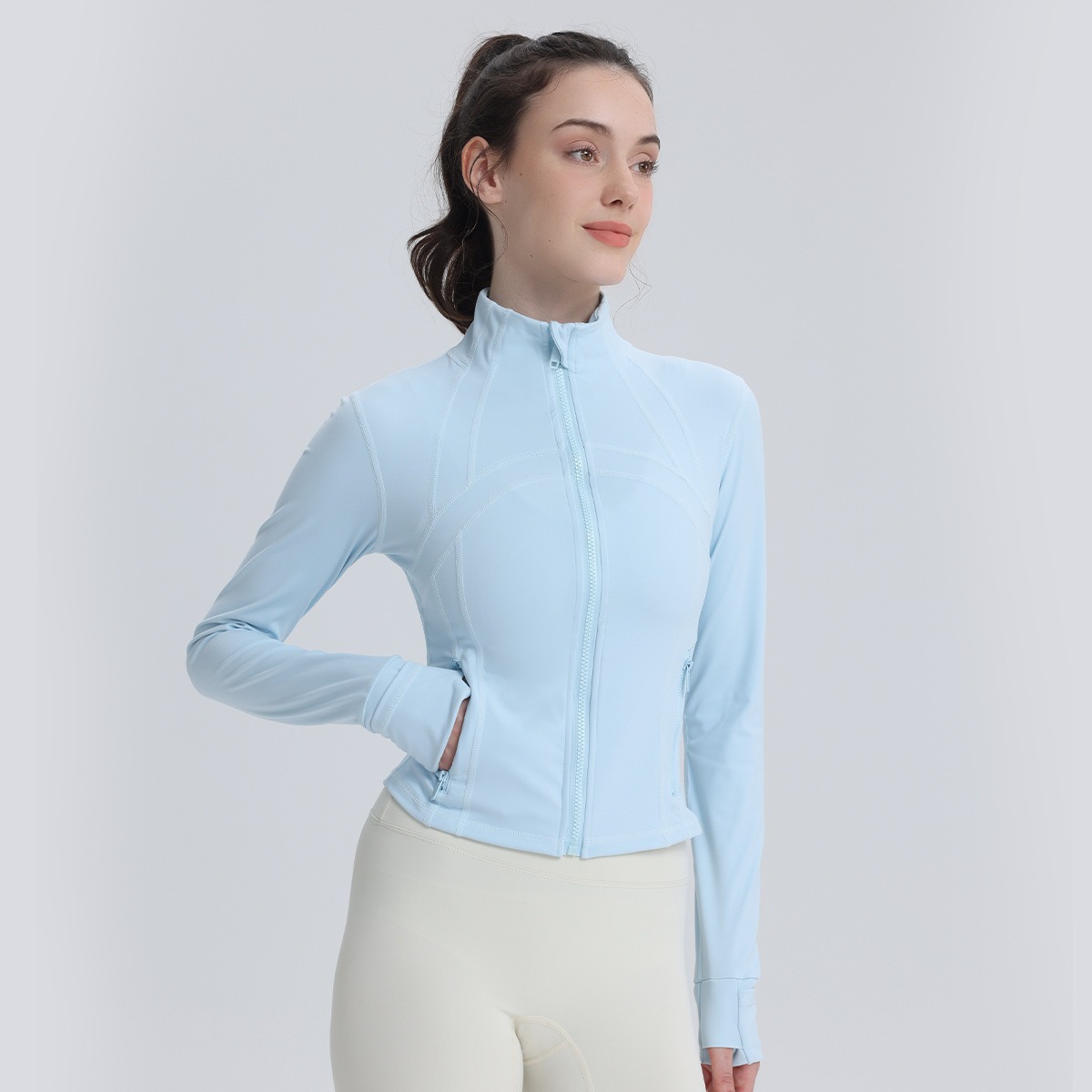- Slim-Fit, Cropped Silhouette: The修身短款 (slim-fit, cropped) cut is designed to flatter the female form. It provides a sleek, tailored look that enhances your silhouette without restricting movement. The过腰 (above-the-hip) length is perfect for pairing with high-waisted leggings or shorts, creating a balanced and modern outfit